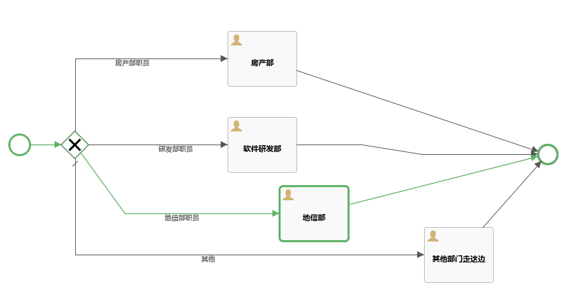 调整后的流程图,是已活动的路线标注为绿色,正在激活状态的为橙色,且流程线上也加上了标注文字。