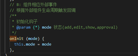 自定义组件若要支持handleInit进行初始化,内部必须写有方法onInit(mode)、参数mode为当前表单的mode。