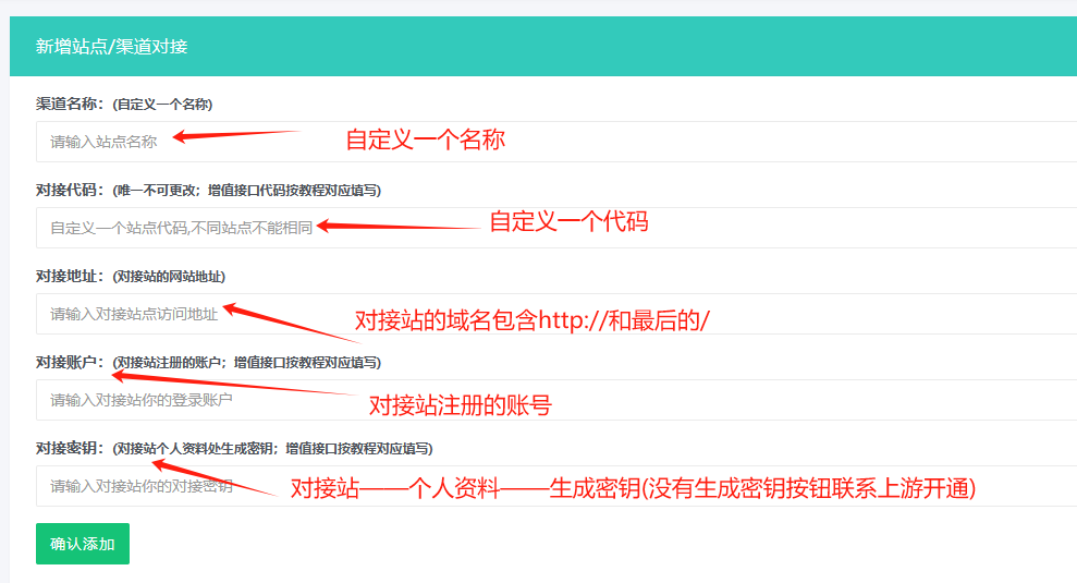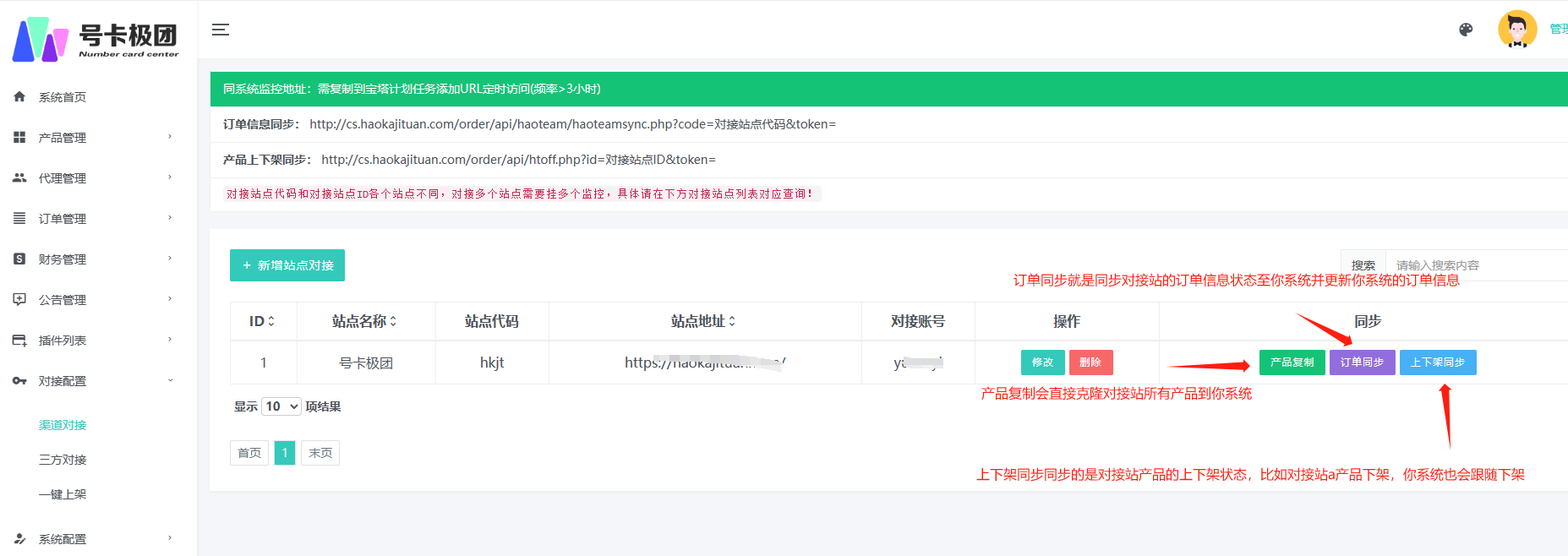 注:同系统对接需联系上游开通对接权限后在极团系统对接配置处添加站点对接