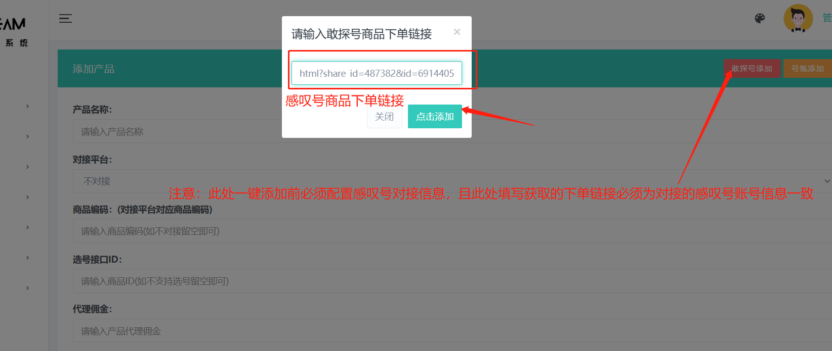 获取到id后点击号氪添加输入id添加,添加后将商品编码更换成号氪后台的商品编码
