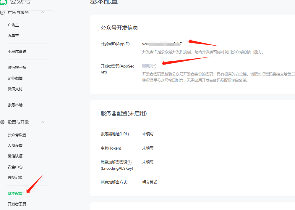 2. **获取AppID和AppSecret**