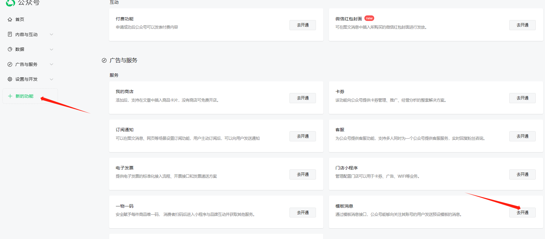 ## 模板消息功能开通