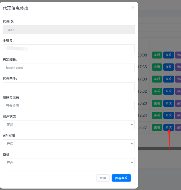 ## 解释说明 在极团后台给极团代理绑定他自己的敢探号店铺名称,然后极团代理使用敢探号收单,收单后订单会提交到极团系统,并且归属该极团代理名下。 ## 具体操作 1、先联系敢探号官方接入号卡极团区分订单来源接口(需付费) 2、然后在敢探号上架产品供分销商收单 3、极团后台给代理绑定敢探号店铺