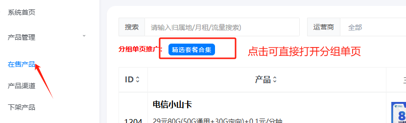 产品分组即为将多个产品归类到一个分组里面,之后代理端会生成这些产品的单独推广页,比如可用于创建省内卡分组,分组里面都是只发省内的产品。