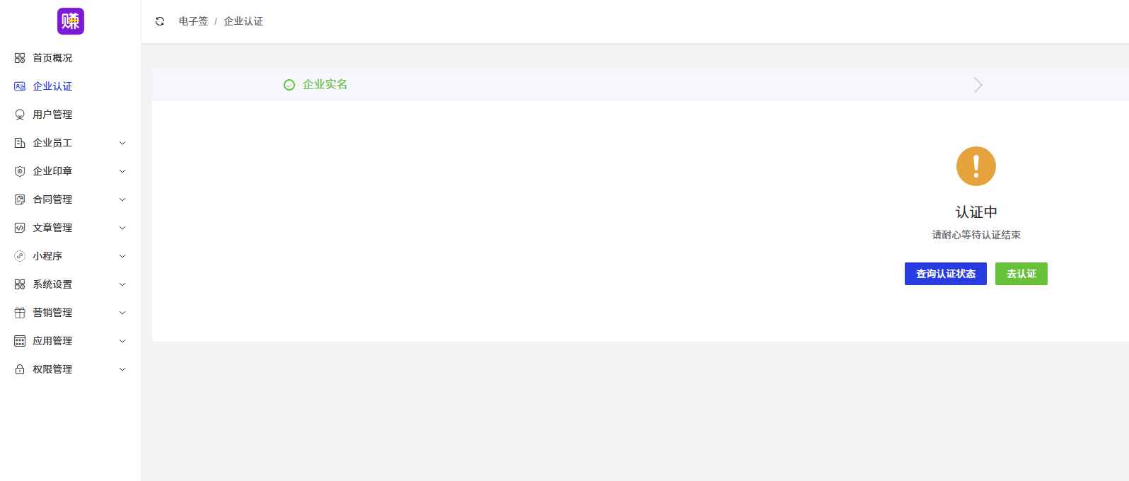 认证全部完成之后,首页重新进来点击查询认证状态。